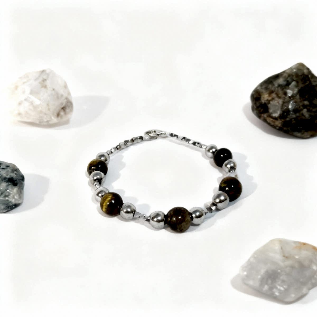 Kaplangözü ve Hematit Doğal Taş El Yapımı Bileklik – Güç, Koruma ve Denge
